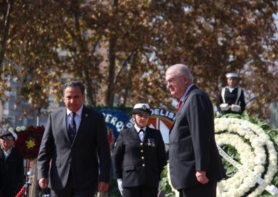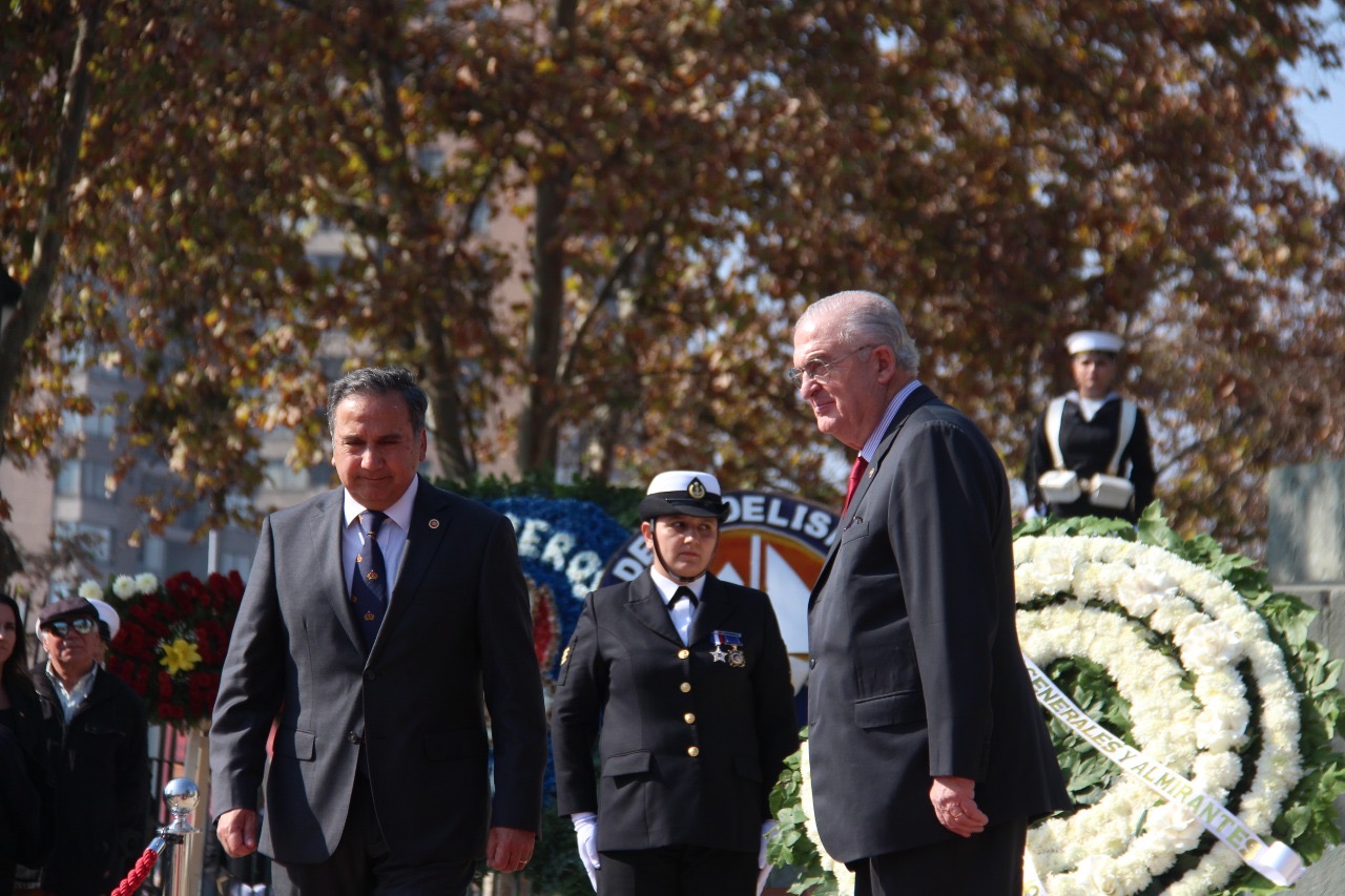 Ceremonia Conmemoración Combate Naval de Iquique y día de las Glorias Navales en Plaza Arturo Prat de Santiago, día 21 de mayo 2025, asistió el Presidente del Cuerpo, General de Brigada Álvaro Guzmán Valenzuela acompañado del Vicealmirante Cristian de la Maza Riquelme, quienes colocaron una ofrenda floral en representación del Cuerpo de Generales y Almirantes